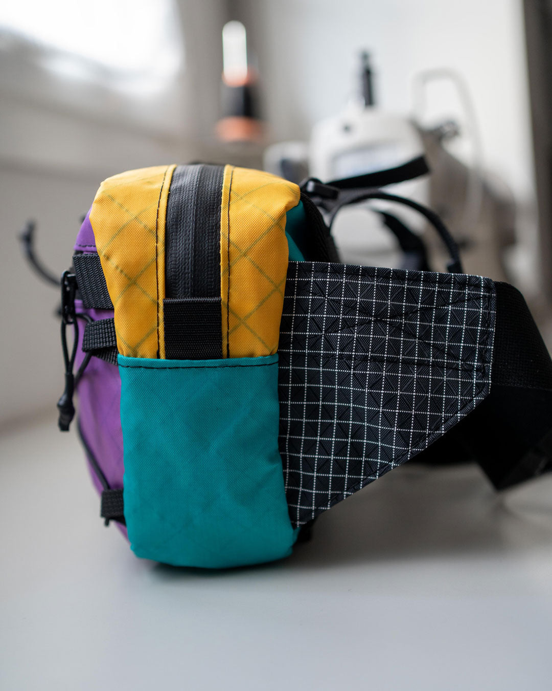 Les sangles qui permettent de l'utiliser en mode sacoche banane, sont cachées au dos de la sacoche.